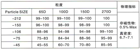 2、粒度:65D、150D、270D、100目、200目、325目等等